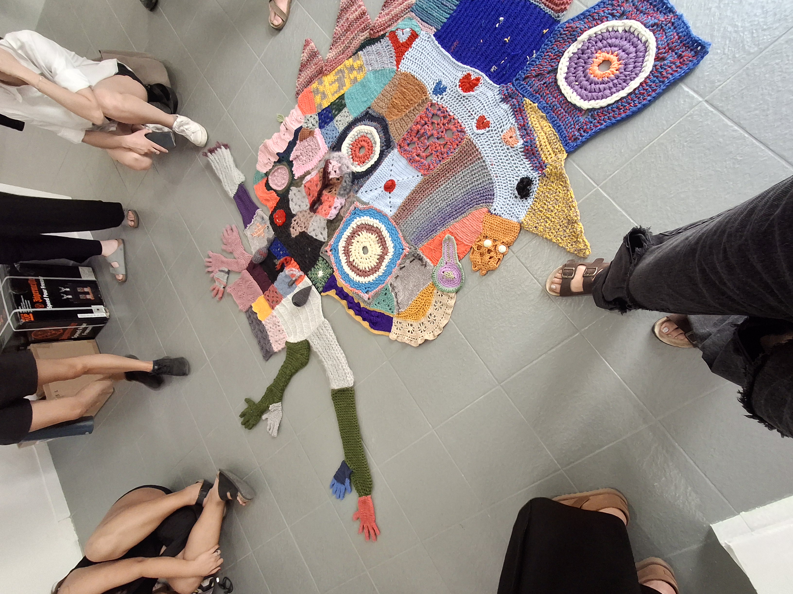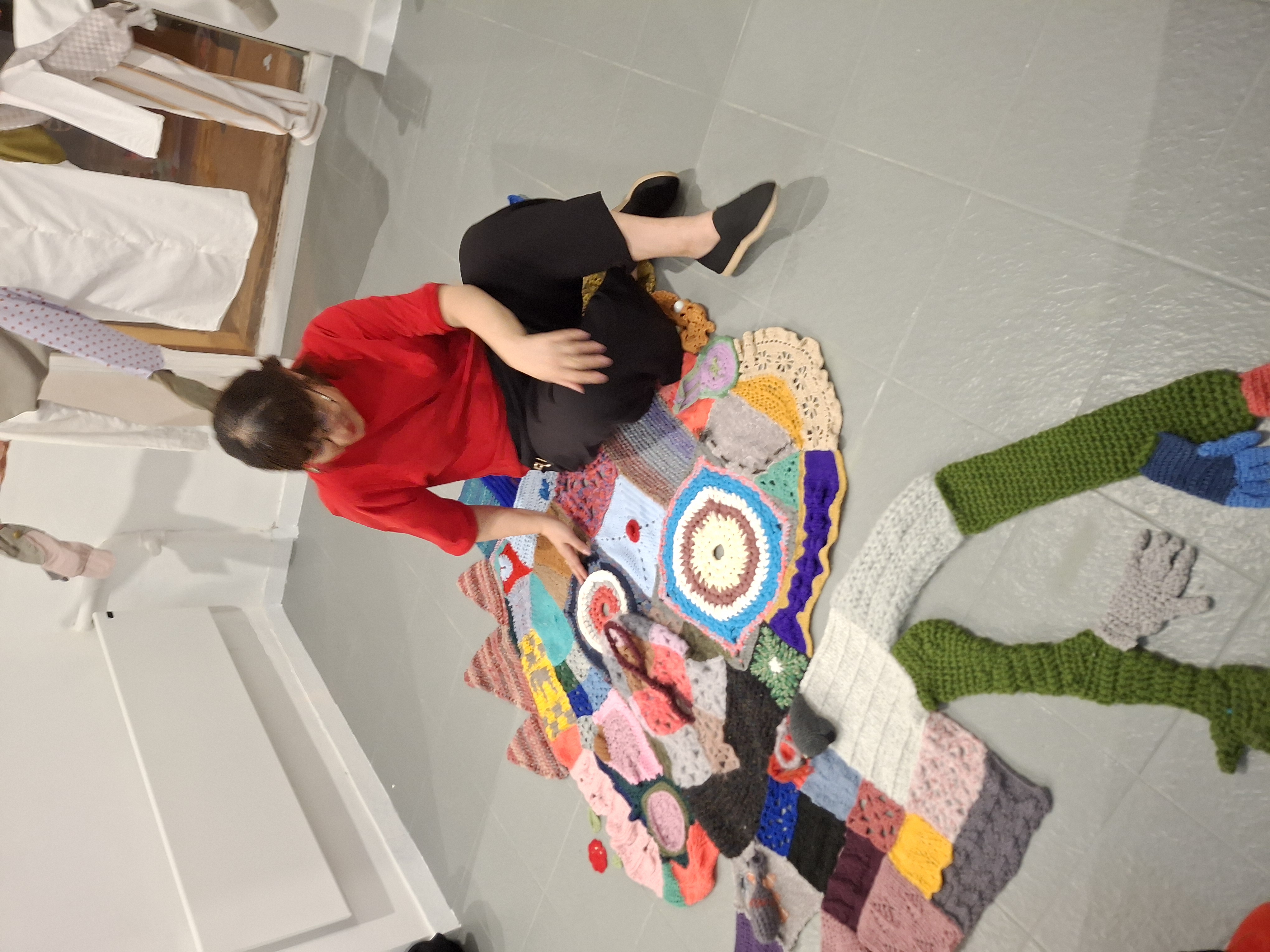 I was afraid I might say something wrong, but Rita spoke so openly about her story. The first photo accidentally captured that moment. Later, I traded three crocheted pieces with her in exchange for three paintings. When we met for the third time, on my birthday, I held a Fohno event at Manyi, and following Rita’s idea, we crocheted hearts alongside the breast-shaped pieces.