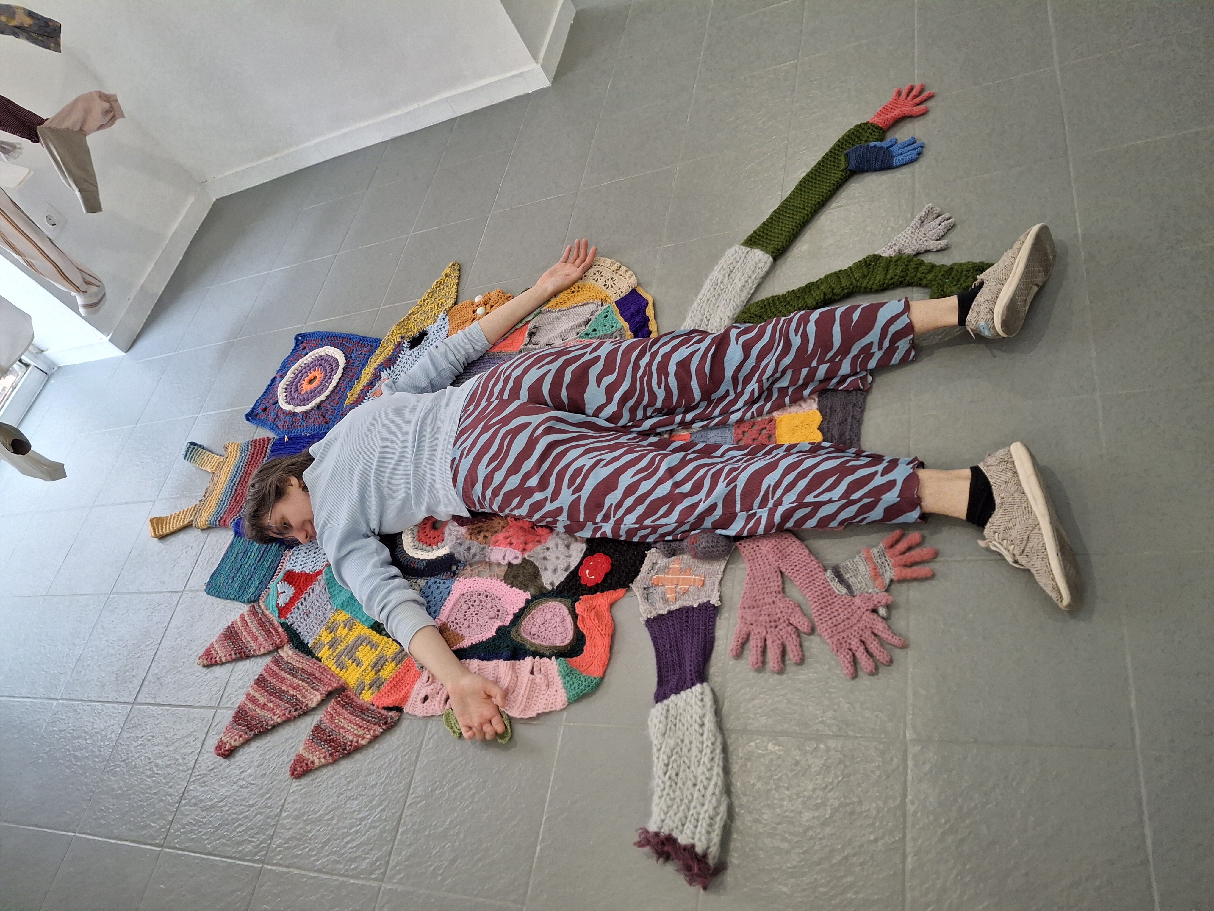 Only one movement, the “point mousse”, also called “maille à l’endroit”, a meditation, a way to occupy my obsessions during a conversation, a silent expression, repeated to infinity, my infinity.